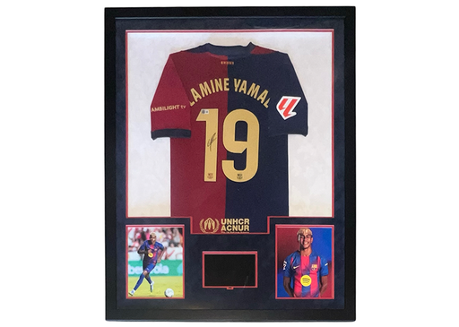 Lamine Yamal autographed Spain National Team jersey professionally framed in a custom 34x42 display. Features adjustable interior LED lighting and ...