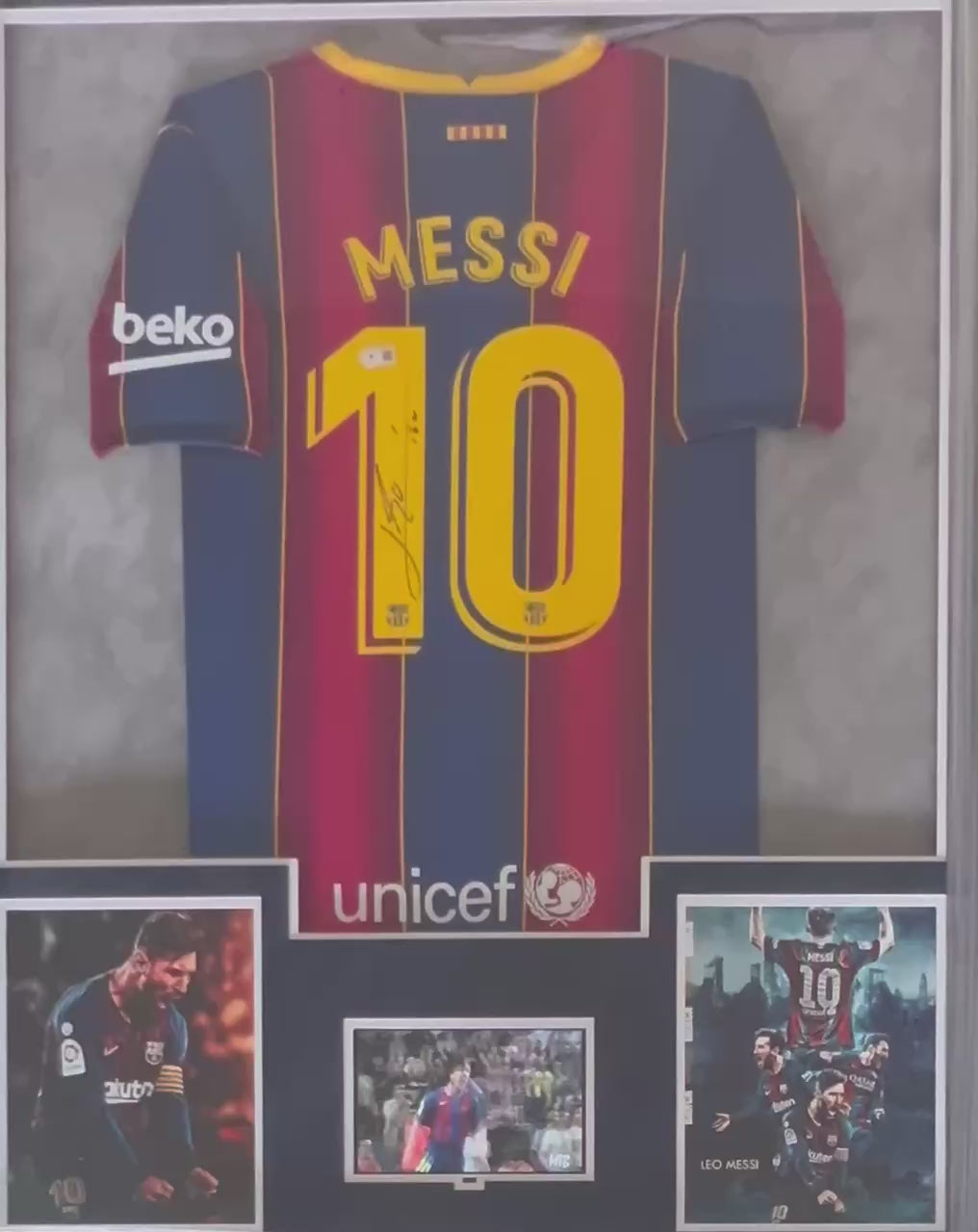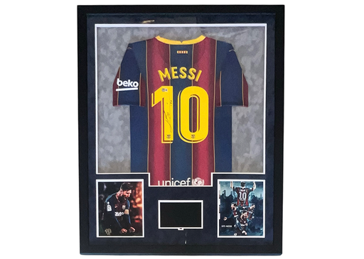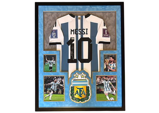 Lionel Messi autographed Argentina National Team jersey professionally framed in a custom 34x42 display. Beckett authenticated with tamper-proof sc...