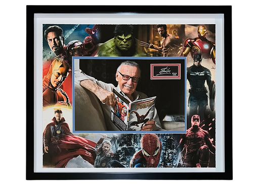 Stan Lee Marvel Universe 24x28 professionally framed display. Features a laser-engraved Stan Lee signature (not hand-signed) showcased alongside ic...