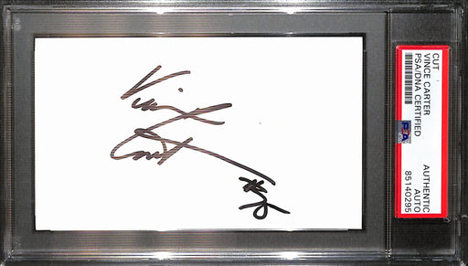 Offered is a Vince Carter Autographed/Signed Cut 3x5 Index Card Atlanta Hawks. This card is authenticated by PSA/DNA and is encapsulated in their t...