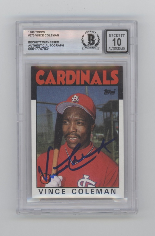 Vince Coleman 1986 Topps #370 RC Signed Beckett BGS 10 Auto St. Louis Cardinals