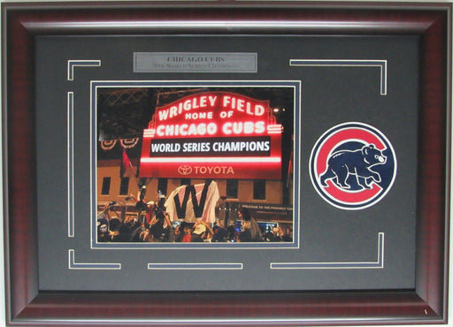 Wrigley Field Cubs 2016 WS Champs Unsigned 8x10 Photo & Cub Logo Framed 146607