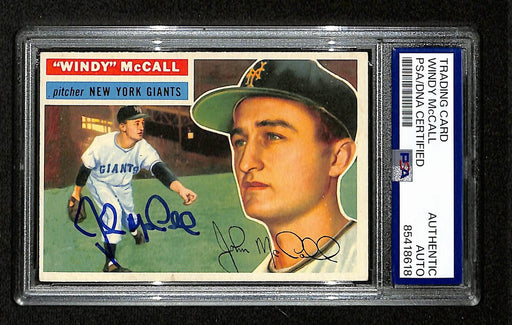Offered is a Windy McCall Signed/Autographed 1955 Topps Card #42 New York Giants. This card is authenticated by PSA/DNA and is encapsulated in thei...