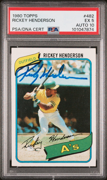 Rickey Henderson 1980 Topps Rookie Card RC #482 - PSA Graded 5/10 Auto (Oakland A’s/HOF)Â