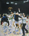 This listing is for a team signed 16x20 Color photo from the 1972 Team USA Olympic Basketball Team. Officially this team won the Silver Medal, but in the hearts and minds of themselves and basketball fans around the world they were the rightful winners of the Men's Basketball Gold Medal at the 1972 Olympics. At the end of the game a series of questionable officiating calls by both the referee and Olympic officials resulted in the Soviets being given three chances to inbound the ball to win the game with just 3 seconds left. On the final play the Soviets scored to "win". To this day members of team USA have refused to accept their silver medals and in fact some players have even added clauses to their will that their descendants can never accept silver medals either. Numerous appeals have been made and there is hope that duplicate gold medals will be issued to the team. This photo is of the American celebration of their victory prior to all the skullduggeries. Photo has been signed by all 12 members of the team: Captain Kenny Davis, Doug Collins, Tom Henderson, Mike Bantom, Robert Jones, Dwight Jones, James Forbes, Jim Brewer, Tom Burleson, Tom McMillan, Kevin Joyce and Ed Ratleff; also signed by assistant coach Johnny Knox for a total of 13 signatures. A very complete piece from the only signing the team has ever done. A great piece of sports history. You KNOW this one is real. This photo has been certified by JSA and comes with their full letter as pictured.