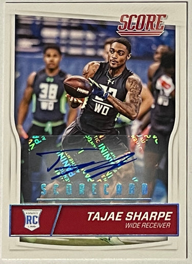 This is a Tajae Sharpe signed Tennessee Titans 2016 Panini Score Scorecard Rookie Card (RC) #375. Image of actual item instock - as shown.