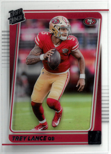 This is a Trey Lance 2021 Panini Clearly Donruss Rated Rookie Card (RC) #54 (San Francisco 49ers). Image of actual item instock - as shown.