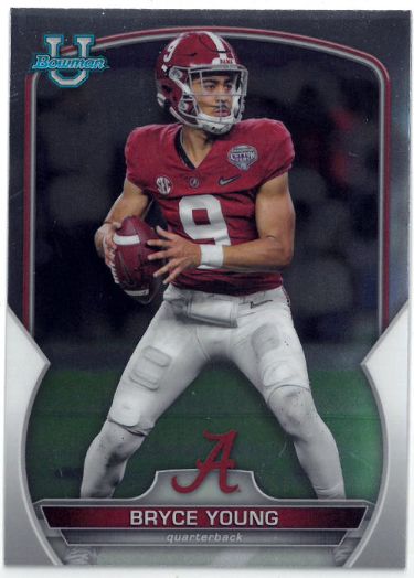 This is a Bryce Young 2022 Bowman U Chrome Rookie Card (RC) #1 (Alabama/Heisman/Panthers). Image of actual item instock - as shown.