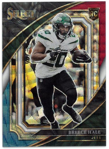 This is a Breece Hall 2022 Panini Select Suite Level Tri-Color Rookie Card (RC) #321- 010/149 (New York Jets/Iowa State). Image of actual item ins...