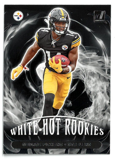 This is a George Pickens 2022 Panini Donruss White-Hot Rookies Insert Card (RC) #WHR-8 (Pittsburgh Steelers). Image of actual item instock - as shown