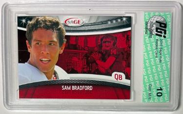This is a Sam Bradford 2010 Sage Auto Rookie Card #7- PGI Graded 10 Gem Mint (Oklahoma/Heisman). Image of actual item instock - as shown. Note: T...