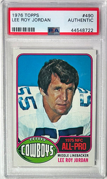 This is a Lee Roy Jordan 1976 Topps Card #490- PSA Slabbed Authentic (Dallas Cowboys). Image of actual item in stock - as shown