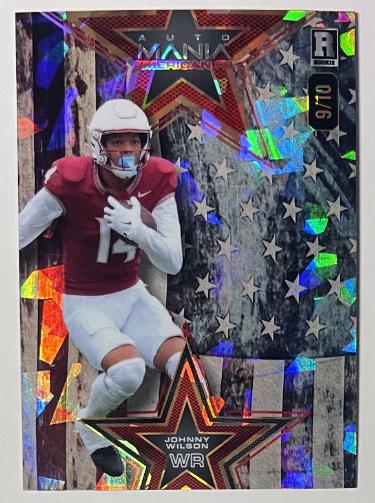 This is a Johnny Wilson 2024 Wildcard American Auto Mania Rookie Card (RC) #AMS-JW- 9/10 (Florida State Seminoles/Philadelphia Eagles). Image of ac...