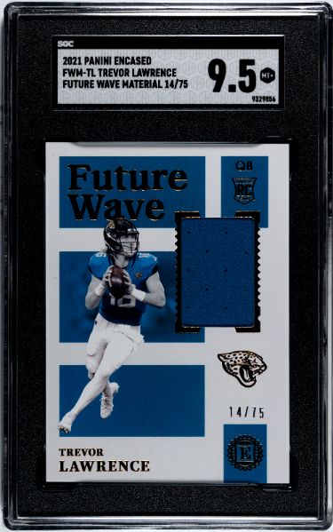Trevor Lawrence 2021 Panini Encased Future Wave Material Rookie Card (RC) #FWM-TL- /75- SGC Graded 9.5 MT+ (Jaguars)