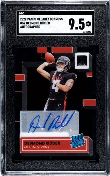 Desmond Ridder signed 2022 Panini Clearly Donruss Rookie Auto Card #52- SGC Graded 9.5 MT+ (Atlanta Falcons)
