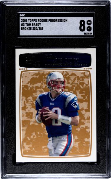This is a Tom Brady 2008 Topps Rookie Progression Bronze Card #3- 330/389- SGC Graded 8 NM-MT (Patriots/HOF/GOAT). Image of actual item instock - a...