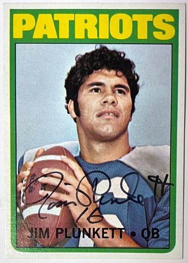 Jim Plunkett signed 1972 Topps Rookie On Card Auto (RC) #65- COA (Centered/Patriots/SBMVP)