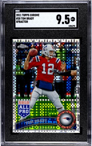 This is a Tom Brady 2011 Topps Chrome Xfractor Card #20- SGC Graded 9.5 Mint+ (Patriots/HOF/GOAT). Image of actual item in stock - as shown.