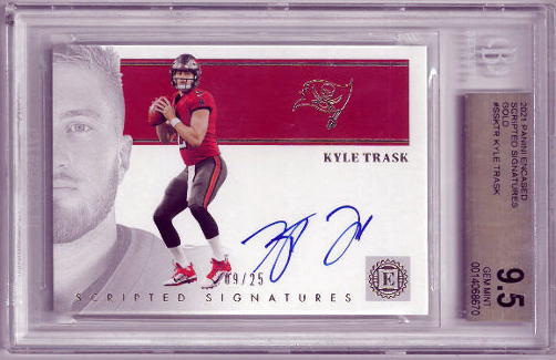 Kyle Trask signed 2021 Panini Encased Scripted Signatures Gold On Card Auto Rookie Card (RC) #SS-KTR-/25-BGS Graded 9.5 Gem Mint