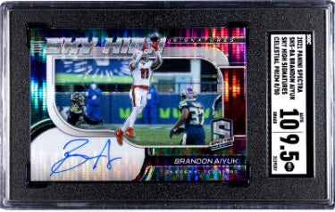 Brandon Aiyuk signed 2021 Panini Spectra Sky High Signatures Celestial Prizm Auto Card #SKS-BA- /50- SGC Graded 9.5 Mint+/10 A