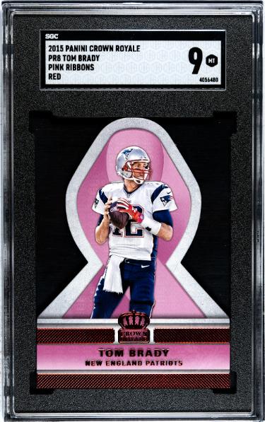 This is a Tom Brady 2015 Panini Crown Royale Pink Ribbons Red Die-Cut Card #PR8- SGC Graded 9 Mint (New England Patriots). Image of actual item in ...