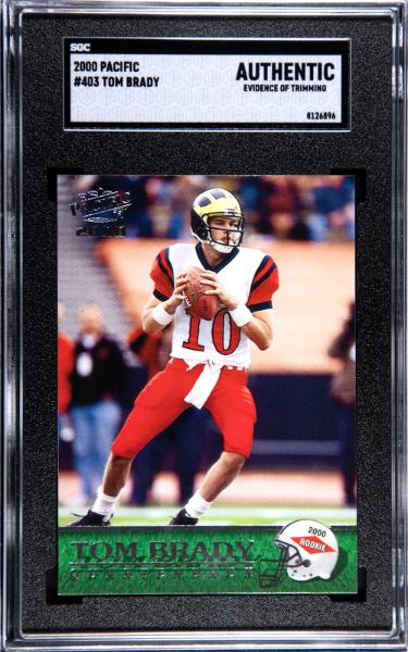 Tom Brady 2000 Pacific Rookie Card (RC) #403- SGC Slabbed Authentic (Evidence of Trimming/Michigan/New England Patriots)