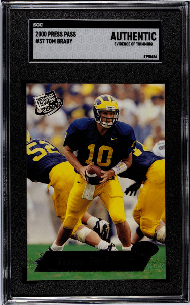 Tom Brady 2000 Press Pass Rookie Card (RC) #37- SGC Slabbed Authentic (Evidence of Trimming/Michigan/New England Patriots)