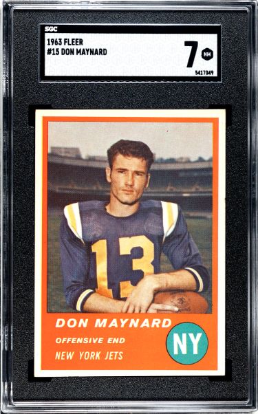 Don Maynard 1963 Fleer Football Card #13- SGC Graded 7 NM (Centered/New York Jets/HOF)