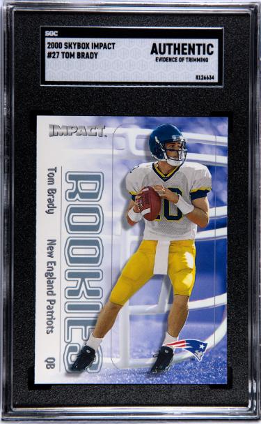 Tom Brady 2000 Skybox Impact Rookie Card (RC) #27- SGC Slabbed Authentic (Evidence of Trimming/Michigan/Patriots/GOAT)
