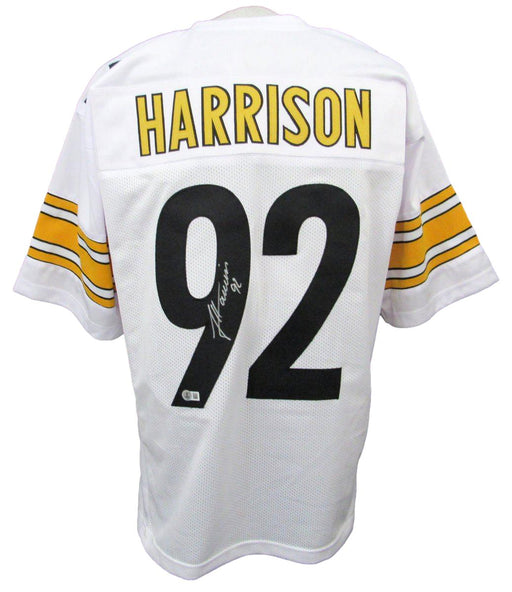 Offered is a James Harrison Signed/Autographed Pittsburgh Steelers Custom White Football Jersey Size XL. This jersey is authenticated by BAS/Becket...