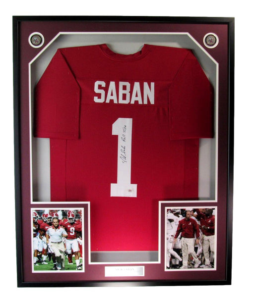 Nick Saban Alabama Signed/Auto Football Jersey w/ Photos Framed PSA/DNA 157684