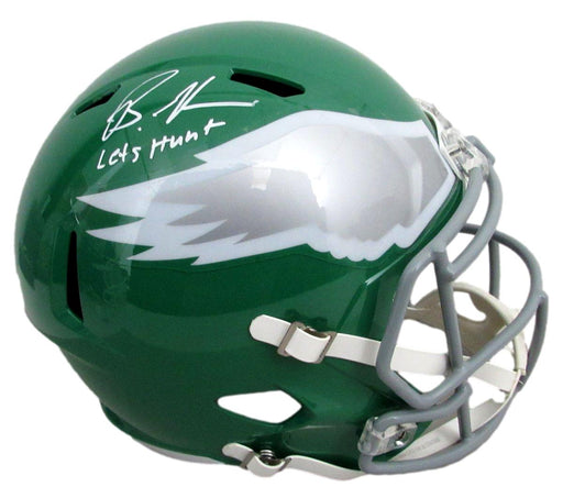 Offered is a Brandon Graham Signed/Inscribed "Let's Hunt" Kelly Green Full Size Replica Football Helmet Philadelphia Eagles. This helmet is authent...