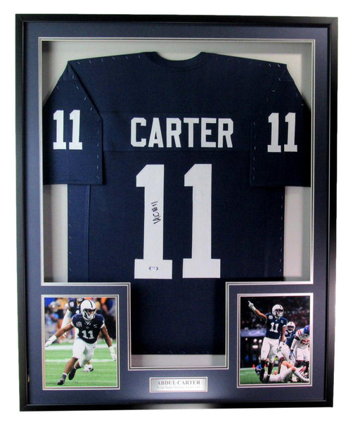 Offered is a Abdul Carter Signed/Autographed Navy-Blue Football Jersey Penn State with Photos Framed. The outer frame size is 33 inches x 42 inches...