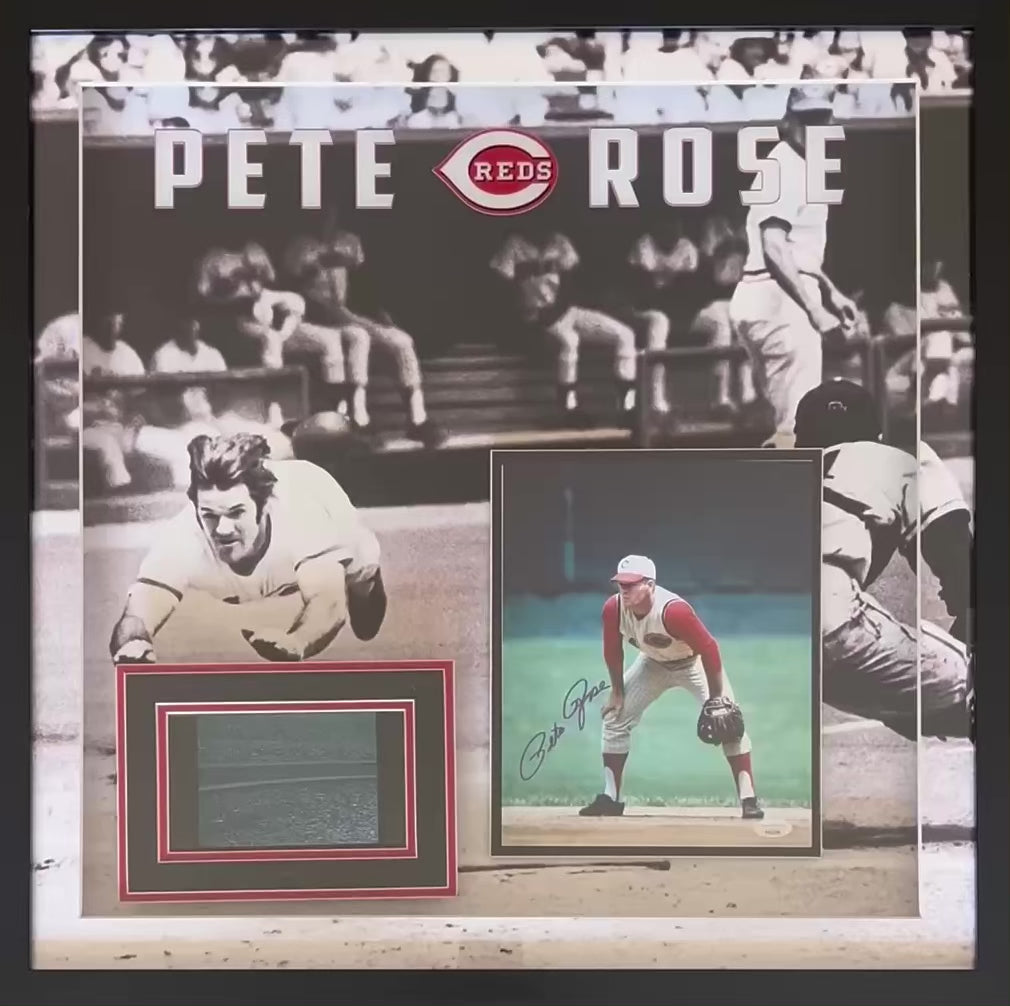 Pete Rose Autographed Photo in 3D Frame with Video Highlights (JSA)