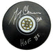 Gerry Cheevers Signed/Inscribed "HOF 85" Boston Bruins Hockey Puck JSA 157551