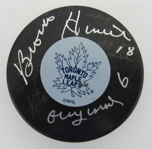 Bronco Horvath Autographed/Inscribed Toronto Maple Leafs Hockey Puck Beckett