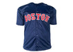 The Wade Boggs Signed Boston Navy Custom Baseball Jersey with James Spence Authentication (JSA) is a one-of-a-kind collectible for fans of the Boston Red Sox baseball legend. This jersey features a signature from Wade Boggs himself, making it a valuable piece for any sports memorabilia collection. The navy blue jersey showcases the team's iconic colors while adding a touch of history and significance with Boggs' signature. Perfect for displaying or wearing to show support for both the team and the player.