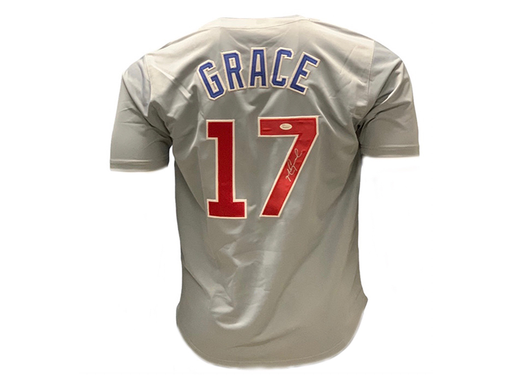 The product is a custom Chicago baseball jersey signed by Mark Grace. The autograph authentication was done by James Spence Authentication (JSA), e...