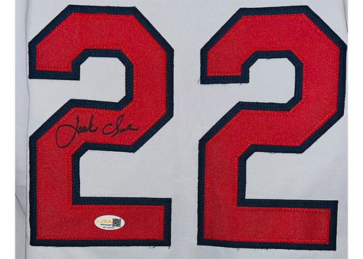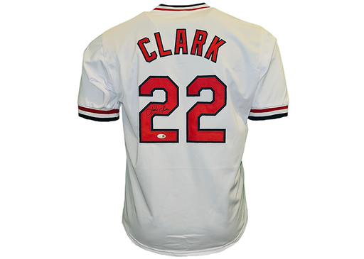 This is a custom baseball jersey in XL hand-signed by Jack Clark. The autograph is certified authentic by JSA. Please note: The photo shown is a st...