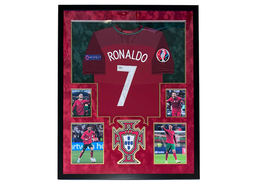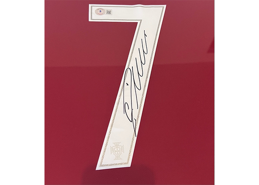 Cristiano Ronaldo autographed Portugal National Team jersey professionally framed in a custom 34x42 display. Beckett authenticated with tamper-proo...
