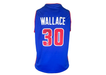 The product is a custom blue basketball jersey signed by Rasheed Wallace, a former player for the Detroit Pistons. The autograph has been authenticated by Beckett Authentication Services (BAS), making it an original item. This unique memorabilia piece would be a valuable addition to any basketball fan's collection, showcasing a piece of NBA history from a notable player and team.