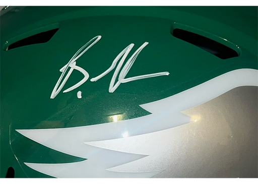 The product is a Brandon Graham signed Philadelphia Eagles speed football helmet with certification from Beckett Authentication Services (BAS). Thi...