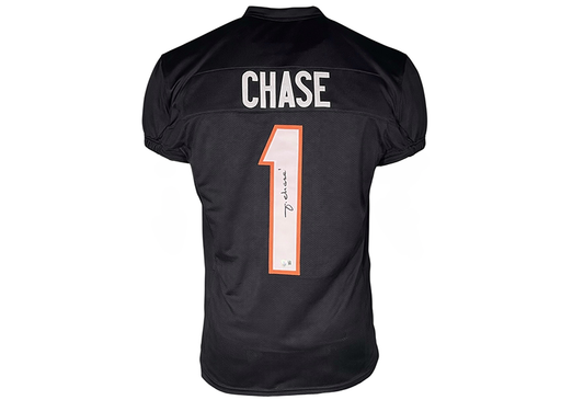 This is a custom football jersey in XL hand-signed by Ja'Marr Chase. The autograph is certified authentic by Beckett. Please note: The photo shown ...