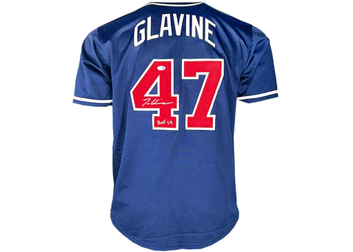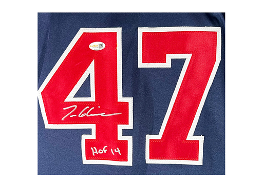 Tom Glavine Signed HOF 14 Inscription Atlanta Navy Baseball Jersey JSA