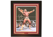 This is a Hulk Hogan signed photo featuring him celebrating with the WWF Championship belt in the ring. The piece is professionally framed and measures 27x24 inches overall.