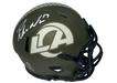 This Los Angeles Rams salute to Service Mini football helmet has been personally hand signed by Puka Nacua and authenticated by Fanatics.