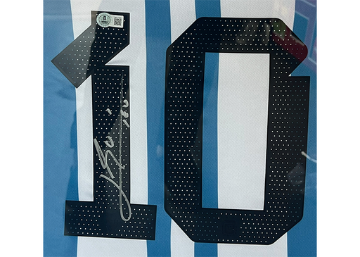 Lionel Messi Signed 34x42 Lighted Framed Argentina Jersey With Playable Video TV Beckett