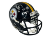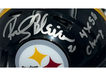 Own a piece of football history with this Rocky Bleier signed Pittsburgh Steelers speed mini helmet. This authentic piece features Bleier's signature authenticated by James Spence Authentication (JSA) and inscription. Perfect for any Pittsburgh Steelers fan, this original and authentic helmet is a must-have for your sports memorabilia collection. Celebrate the team's historic Super Bowl victories without talking about the condition of the helmet. Add this stunning piece to your collection today.