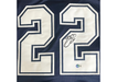This is a custom football jersey in XL hand-signed by Emmitt Smith. The autograph is certified authentic by Beckett.