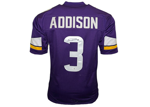 Show off your Minnesota Vikings pride with this custom purple football jersey signed by Jordan Addison. This custom jersey is perfect for any avi...